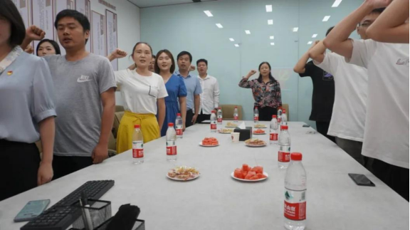 在“七一”建党节来临之际,在支部书记马春燕的领誓下,党员教师、预备党员学生重温入党誓词,大家高举右拳,用铿锵有力的声音表达了自己对党和人民做出的承诺。以此勉励同学们永葆艰苦奋斗、拼搏向上的传统精神,赓续红色血脉,在岗位上做出成绩。