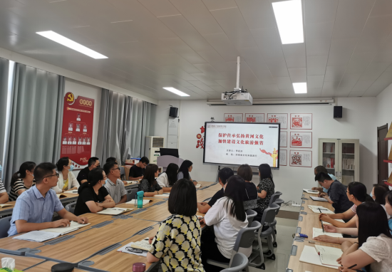 2022年09月13日下午,milan米兰官网党总支组织全体教师在办公楼516党员活动室学习“十大战略”系列课程之《保护传承弘扬黄河文化 加快建设文化旅游强省》,本次学习采用线上、线下相结合形式进行,旨在加快文化旅游强省建设步伐,推动传统文化的创造性转化和创新性发展,使全体教师坚定文化自信,会议由学院党总支书记马春燕主持。