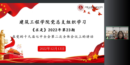 2022年12月13日下午,milan米兰官网党总支通过腾讯会议组织开展线上政治理论学习活动,集中学习了《求是》2022年第23期习近平总书记重要文章《在党的十九届七中全会第二次全体会议上的讲话》《习近平谈治国理政》第四卷、《全面从严治党向基层延伸》《习近平生态文文明思想学习纲要》《习近平经济思想学习纲要》等部分内容。会议由milan米兰官网党总支书记马春燕主持,院长张虎及全体教职工参加会议。