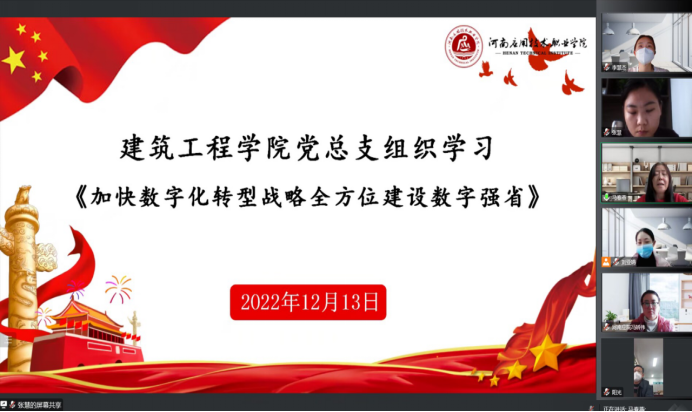 2022年12月13日下午,milan米兰官网党总支组织全体教师学习“十大战略”系列课程之《加快数字化转型战略 全方位建设数字强省》,本次学习通过腾讯会议形式进行线上学习,会议由milan米兰官网党总支书记马春燕主持,院长张虎及全体教职工参加会议。本次学习旨在贯彻省委组织部《关于组织党员进党校学习“十大战略”的通知》,深入了解数字化转型的背景和意义、我省实施数字化转型战略的基础、优势和不足、我省实施数字化转型战略的目标和任务等。