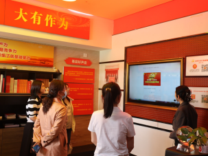 大桥石化红色家园是大桥石化集团党委建设的党员示范教育基地。在讲解员的引导下,马春燕一行参观了先后党建展馆、教课室、讲习所、播音室、电教馆、演播大厅。在讲习所认真观看了张贵林书记讲的《百年大党,百节党课》微党课视频,在播音室收听了党建好声音党史微党课,电教馆是一座以党史和大桥石化党建为主线,以大数据、互联网+党建为载体建造的一座高科技智慧展馆,寓科技、趣味、娱乐为一体,大家有兴趣地体验了实体翻书机、压力木块、3D拍照等设施,深深为电教馆的科技感、新奇感所折服。参观过程中,讲解员重点介绍了大桥石化集团党委书记、董事长张贵林总结的大桥石化发展的核心理念及党建“三力”经验。二楼展台上的红色书刊、手抄党章、快板书、党建工作法、党史学习材料等引起各位党员教师和学生党员的浓厚兴趣,纷纷表示收获颇丰。