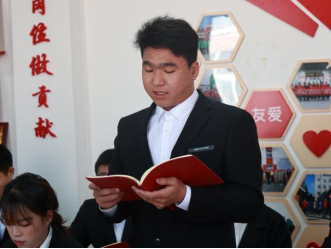 史庆春等19名发展对象向党组织宣读入党志愿书,汇报自身对党的认识、入党动机、本人履历及在校表现等,以及向党组织说明的其他问题。