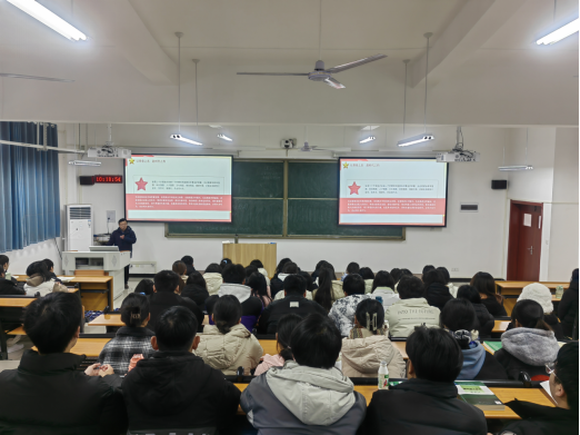 为扎实深入开展学习贯彻习近平新时代中国特色社会主义思想主题教育,深刻理解并牢牢把握“学思想、强党性、重实践、建新功”的总要求。2023年12月18日,milan米兰官网教工党支部书记李勇在开封校区A203为造价2203-2204班学生讲授“以青春之名,赴时代之约”专题党课。