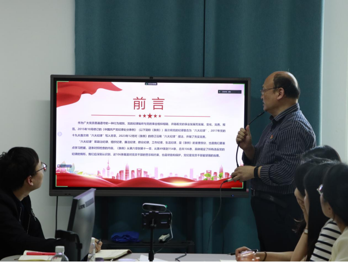 张虎以《恪守“六大纪律”,筑牢思想根基》为主题,对“六大纪律”的主旨要义和规定要求进行了详细讲解。他要求全体党员教师要坚守共产党人的理想信念和初心使命,不断提升政治境界、思想境界、道德境界,始终做党的光荣传统和优良作风的传承者,紧扣“六大纪律”深钻细悟,准确把握蕴含其中的理想信念、价值追求和道德准则,努力做自我革命的表率、遵规守纪的标杆。