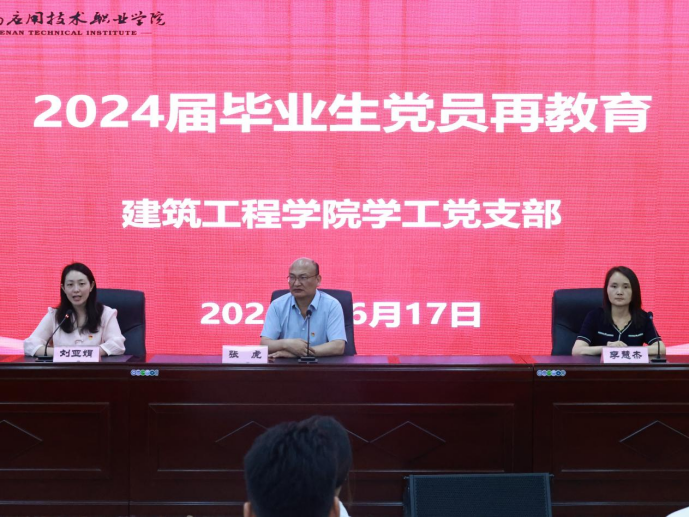 为深入贯彻落实习近平新时代中国特色社会主义思想,加强对毕业生党员的党性教育和思想引领,铸牢中华民族共同体意识,2024年6月17日,milan米兰官网在郑州校区A516会议室组织召开2024届毕业生党员再教育主题会议。本次会议由milan米兰官网党总支书记张虎主持,党总支副书记刘亚娟,党政办主任李慧杰及2024届毕业生党员参加。