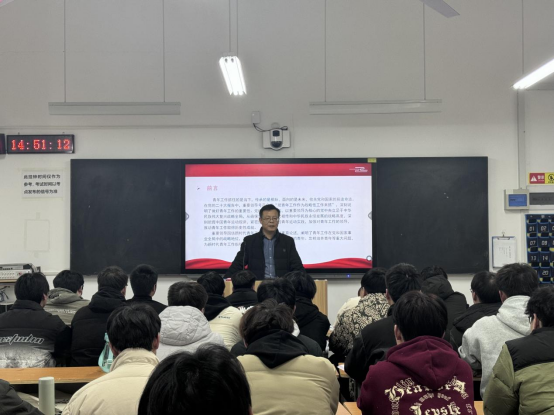 为深入学习贯彻党的二十届三中全会精神,领会和贯彻习近平总书记对学校思政课建设的重要指示精神。2024年12月5日,院长李勇以《强国有我,挺膺担当》为主题在开封校区F108教室为学生讲授专题思政课,学院学生代表参加。