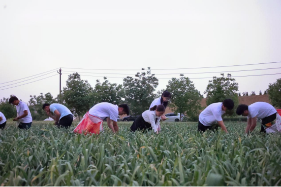 活动前,milan米兰官网派驻庙台村第一书记任旭凯向团队师生详细介绍了庙台村的基本情况及发展规划。活动期间,团队师生深入开展系列助农劳动。在当地农户指导下,党员教师与学生分工协作,有序完成蒜薹采收、分拣和运输工作,累计帮助农户完成近8亩耕地的蒜薹采收工作。