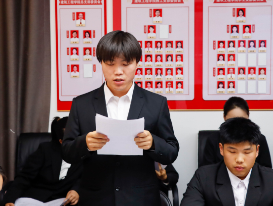 李相成等15名发展对象依次宣读入党志愿书,从思想、学习、工作和生活等方面汇报个人情况,阐述对党的认识、入党动机、本人履历及在校表现等。他们总结了考察期的成长与收获,承诺若成为预备党员,将以党员标准严格要求自己,发挥先锋模范作用,为班集体建设贡献力量。
