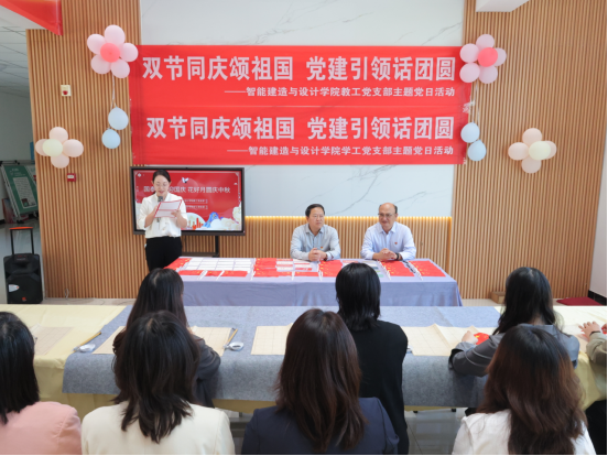 为庆祝中华人民共和国成立76周年与传统中秋佳节,深入学习贯彻习近平新时代中国特色社会主义思想,推动党建工作与传统文化、爱国教育深度融合。2025年9月25日,milan米兰官网学工党支部与教工党支部在开封北院F楼大厅联合开展“双节同庆颂祖国,党建引领话团圆”主题党日活动。校党委委员、副校长常新中以普通党员身份参与本次活动,活动由学院党总支副书记刘亚娟主持,学院全体党员教师、部分学生代表参与。