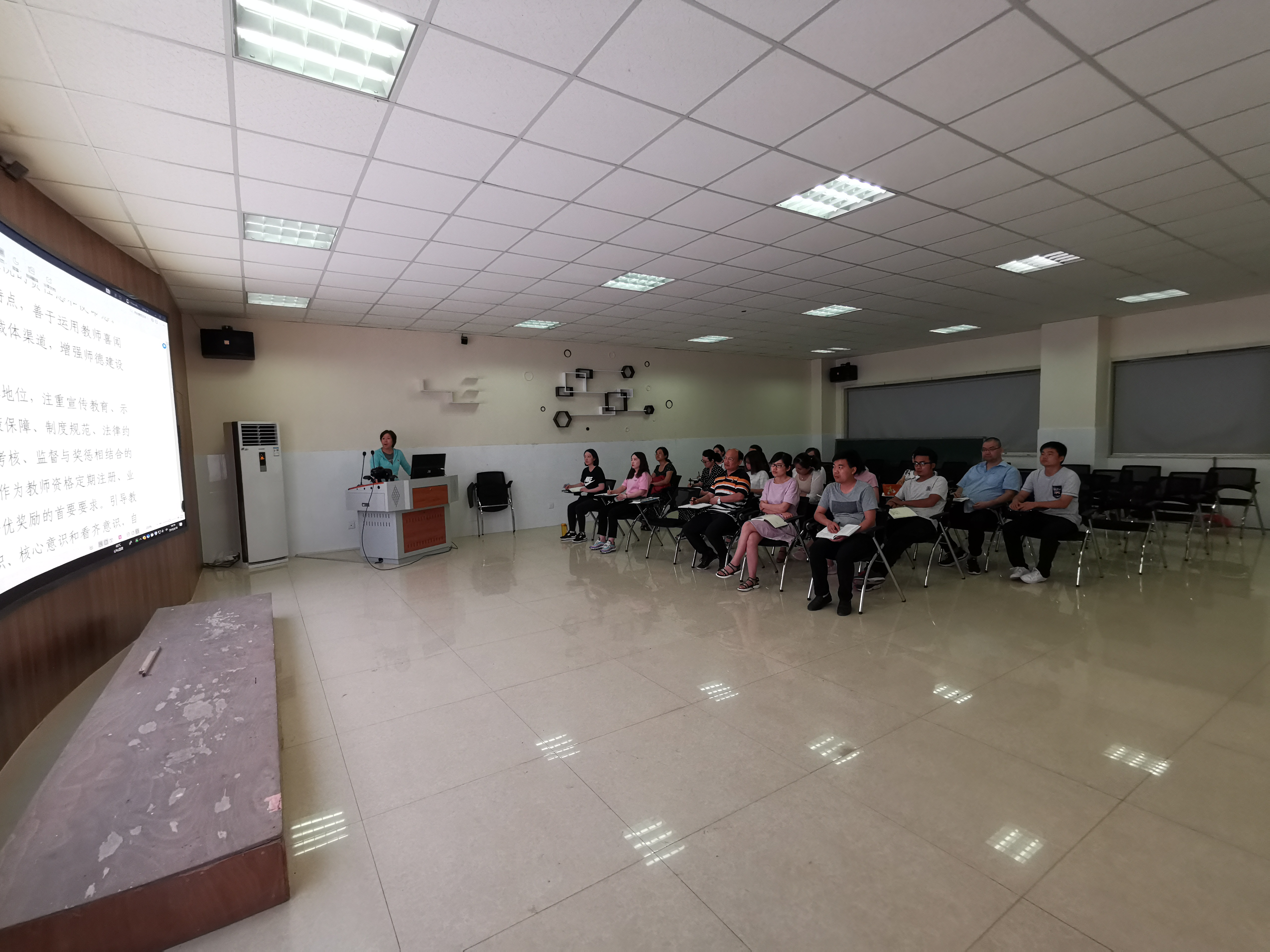最后,张虎院长指出,我们老师要认真领会这几个文件的精神内涵。因为教师的思想政治素质和职业道德水平的高低直接关系到教育教学质量的好坏。我们教师要把“言教”和“身教”有机结合起来,用高尚的师表形象去感染学生,教育学生,真正成为学生灵魂的工程师。