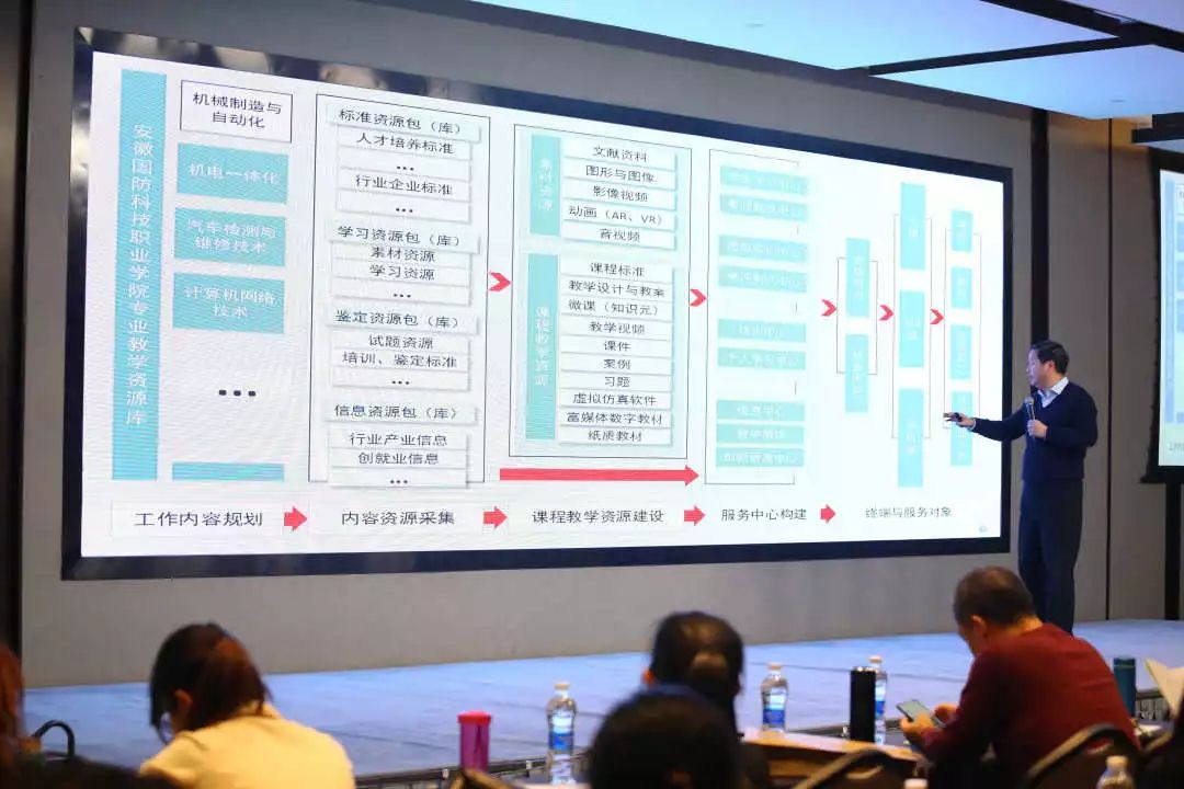 陈利专家围绕“职业教育专业课程资源建设与教育信息化的思考—路径与方法”作主题报告,主要讨论了优质课程建设需要注意的问题,并就十三五国家规划教材申报进行了详细解读。