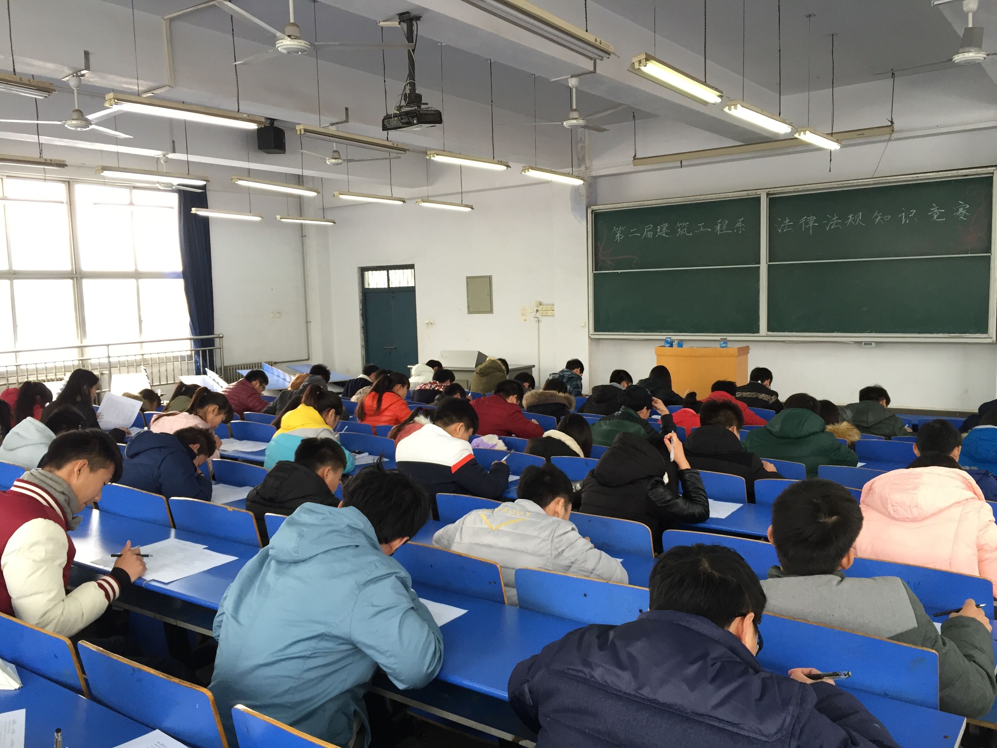为了提高我系建筑法律法规知识水平,进一步加深同学们对建筑系法律法规的深层认识,我系特于2015年11月24日举行了第二届大学生建筑法律法规知识竞赛,促进了我系的学风建设行径。