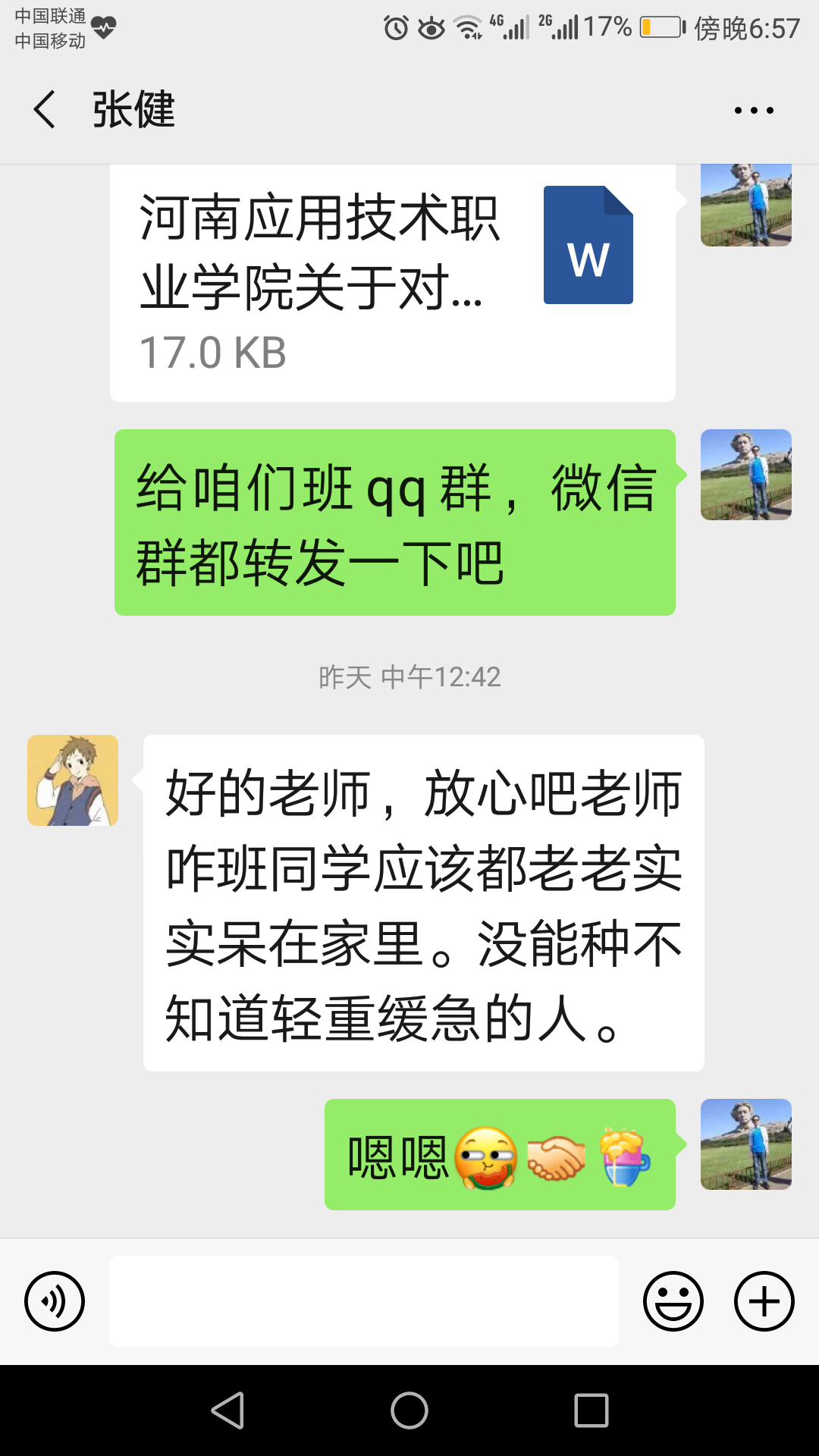 milan米兰官网milan米兰官网的辅导员们按照学校和马春燕书记的工作部署要求,勇担使命,竭尽所能,尽献微光。他们作为一线战“疫”员,忙碌在自己的工作岗位上,密切关注、关心学生近况。认真落实好“日报告、零报告”制度,建立了本班疫情防控学生信息台账,每日摸排学生状况、统计上报疫情数据、每日问候湖北学生、每日在班级群第一时间转发分享疫情变化和相关时事新闻,提醒班级同学做好疫情防护工作,对学生进行思想引导和心理疏导,与学生沟通缓解紧张情绪,与家长联系争取工作支持。对网上恶意传播和扭曲疫情信息所造成的恐慌等现象,积极发声,及时辟谣,教育同学们不信谣、不传谣,宣传合理的防疫措施,让学生认识到每个人都是自身健康的第一责任人,务必做好自我防护。