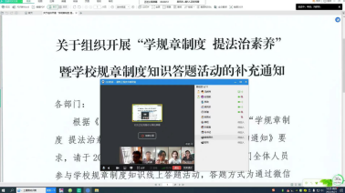 2022年4月21日下午,milan米兰官网三个教研室分别通过线上等方式召开关于“学规章制度提法治素养”暨学校规章制度知识答题活动会议。