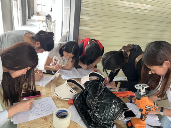 学生们在老师的指导下分组进行实操。老师穿梭于各小组之间,密切关注学生的操作情况,及时纠正不规范的操作手法,解答学生们遇到的各种问题。对于材料算量中出现的共性问题,韩晓芳则集中进行讲解和示范,强调龙骨间距规范和板材拼接的细节处理,确保每位学生都能掌握正确的施工工艺。