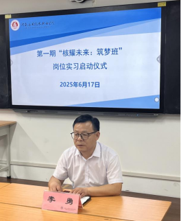 院长李勇介绍了本次“核耀未来·筑梦班”设立的深远意义,希望同学们在岗位实习中将理论知识与实践相结合,将知识转化为生产力,提高自己的实践应用能力,用专业能力为社会和企业创造价值。