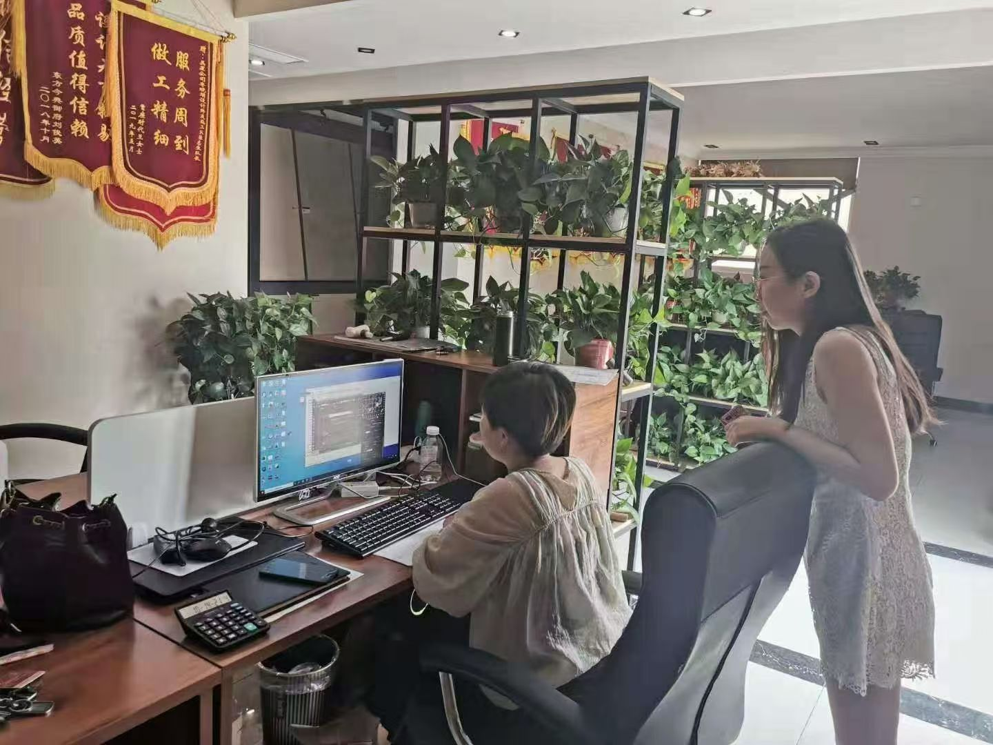 薛婵老师、郑航老师则在河南正广建设工程有限公司,关切询问室设2303班吕松哲、室设2304班许语晴两位设计师助理的交通、食宿、休息等生活问题,全面掌握学生实习以来的生活与工作状态。