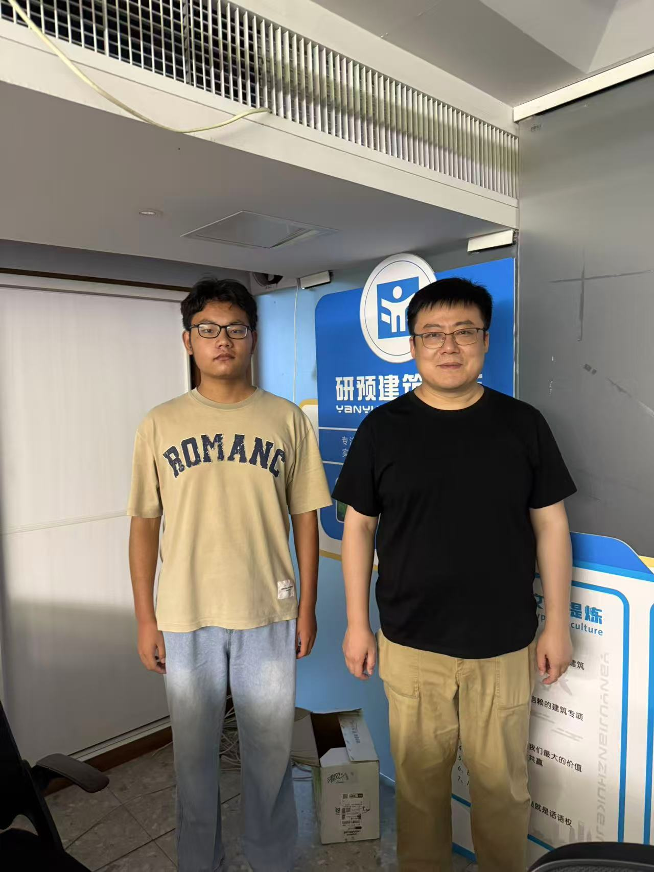 王翔老师先通过电话沟通造价2301班杨恒坤同学的实习困难,后在研预建筑科技有限公司现场了解其工作交际与岗位内容;