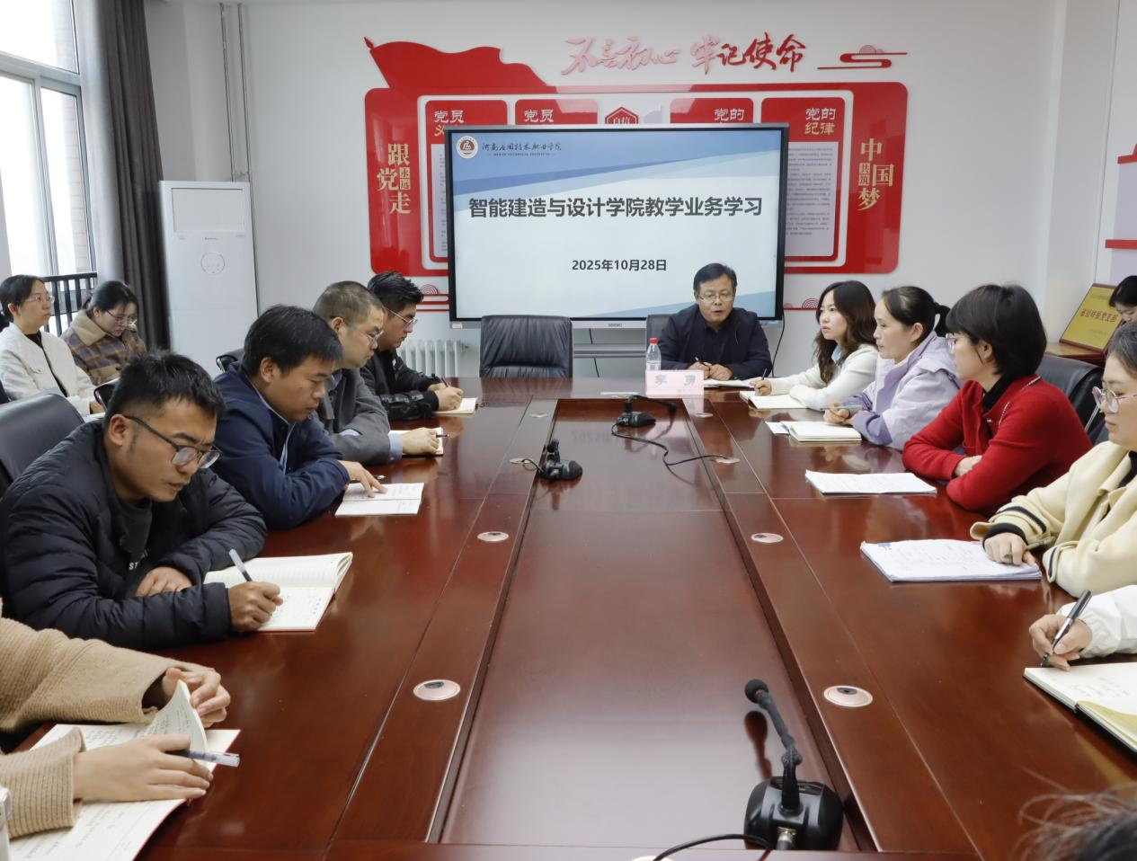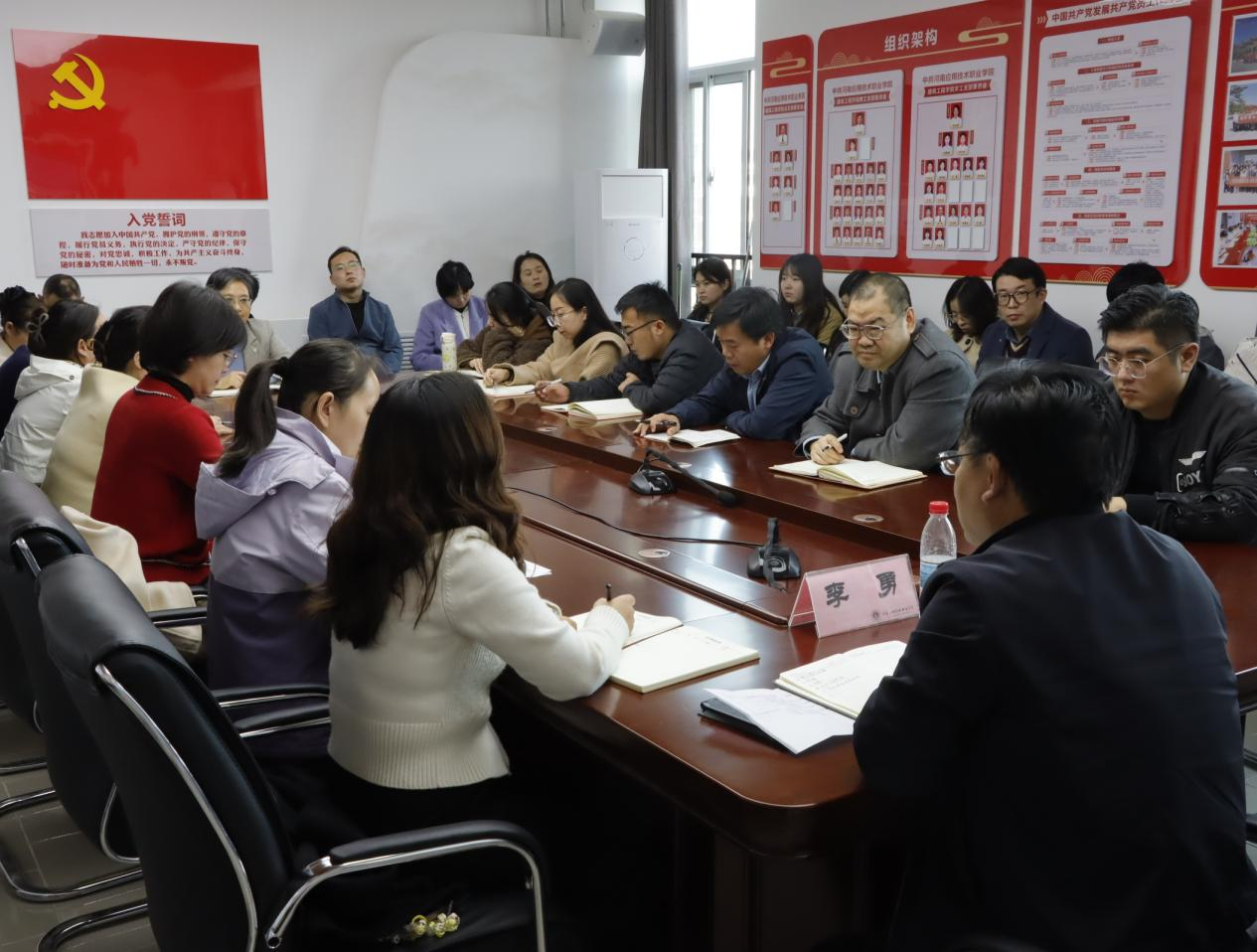 会上,李勇领学《河南省教育厅办公室关于开展河南省职业院校专业人才培养方案评价工作的通知》并着重强调了人才培养方案修订的重要性,要求各专业紧密结合行业发展趋势与企业需求,对课程体系进行优化,确保学生所学与市场需求无缝对接。同时,针对社会培训工作,他提出要拓宽渠道,加强与企业的深度合作,开展定制化培训,提升学院的社会服务能力。