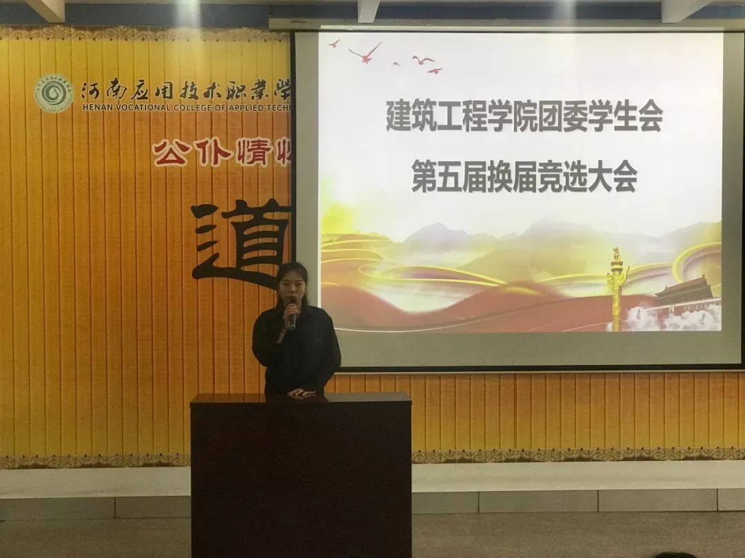 2018年9月20日中午12:30,milan米兰官网团学会第五届换届大会在B楼二楼学术报告厅进行竞选。milan米兰官网党总支书记马春燕老师与团总支书记刘亚娟老师主持了大会,刘亚娟老师肯定了上一届学生会的工作,并宣读开始进行第五届职位竞选演说。