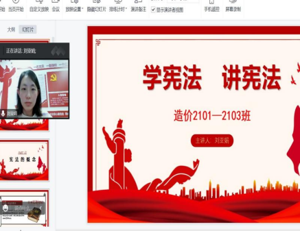在全学院范围开展“学习宣传贯彻党的二十大精神,自觉维护宪法权威”“学习宪法精神”“学宪法、讲宪法”“弘扬法治精神,维护宪法权威”等主题班会,辅导员通过视频、讲解PPT等形式来向大家讲解宪法的由来、宪法的地位以及宪法的核心内容等,向同学们阐释了“学宪法,讲宪法”对大学生砥砺前行、立志成才的重要意义,并呼吁同学们认真学习宪法,大力弘扬社会主义法治精神,努力培养社会主义法治文化,让宪法信仰根植于每个人内心深处。
