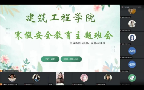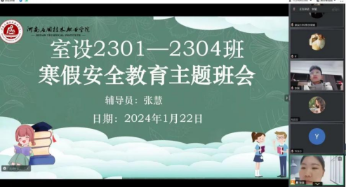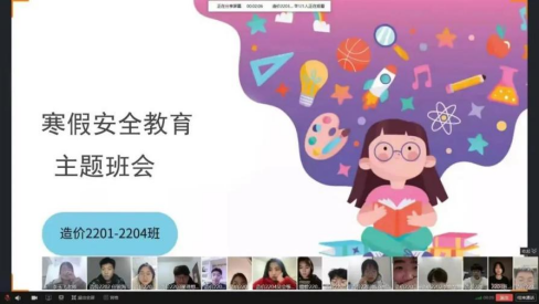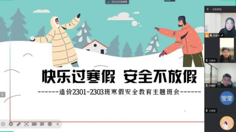为提高学生安全意识和自我防护能力,做到“快乐过寒假,安全不放假”,milan米兰官网组织全体专兼职辅导员于1月22日至1月23日召开线上寒假安全主题班会。