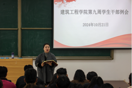 2024年10月21日,milan米兰官网在开封校区 D101教室组织召开了学生干部例会。此次例会旨在总结过往工作经验,明晰未来发展方向,全力提升学生干部的综合素质与工作能力。会议由milan米兰官网学工办主任史真主持,团总支书记王莹、部分辅导员以及主席团、各部长、24 级全体学生会成员共同参与。