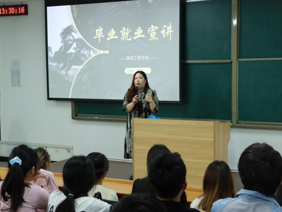 周琪首先以“学生思维”为主题,深入浅出地讲解了如何培养独立思考、勇于创新的能力。接下来根据自己的工作经历和生活实践详细地介绍了如何有针对性地制作简历,以及在面试中如何充分展现自己的专业技能。她还强调了实习中应保持不怕苦、不抱怨的工作态度和敬业精神。这些实用的建议让在场的同学们深受启发,对即将到来的实习和就业充满了信心。最后周琪与大家进行了互动,耐心解答了大家提出的问题并告诫大家无论何时,身处何地,都要以安全为主,提高防范意识,预防各种诈骗。
