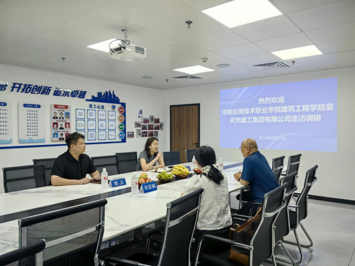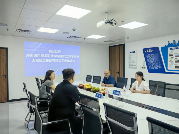 天然建工集团有限公司副总经理柴玲,我院优秀校友公司市场部经理郑义热情接待学院一行。走访调研中,张虎详细听取企业情况介绍,询问企业人才需求,认真了解校友事业发展近况,并强调校友是学院宝贵的社会资源和财富,希望我院的优秀校友进一步关心和支持学院的建设与发展,为我院毕业生提供更多的就业岗位,帮助年轻校友成长,构建母校与校友相互促进的协同发展体系,为学院高质量发展贡献更大力量。