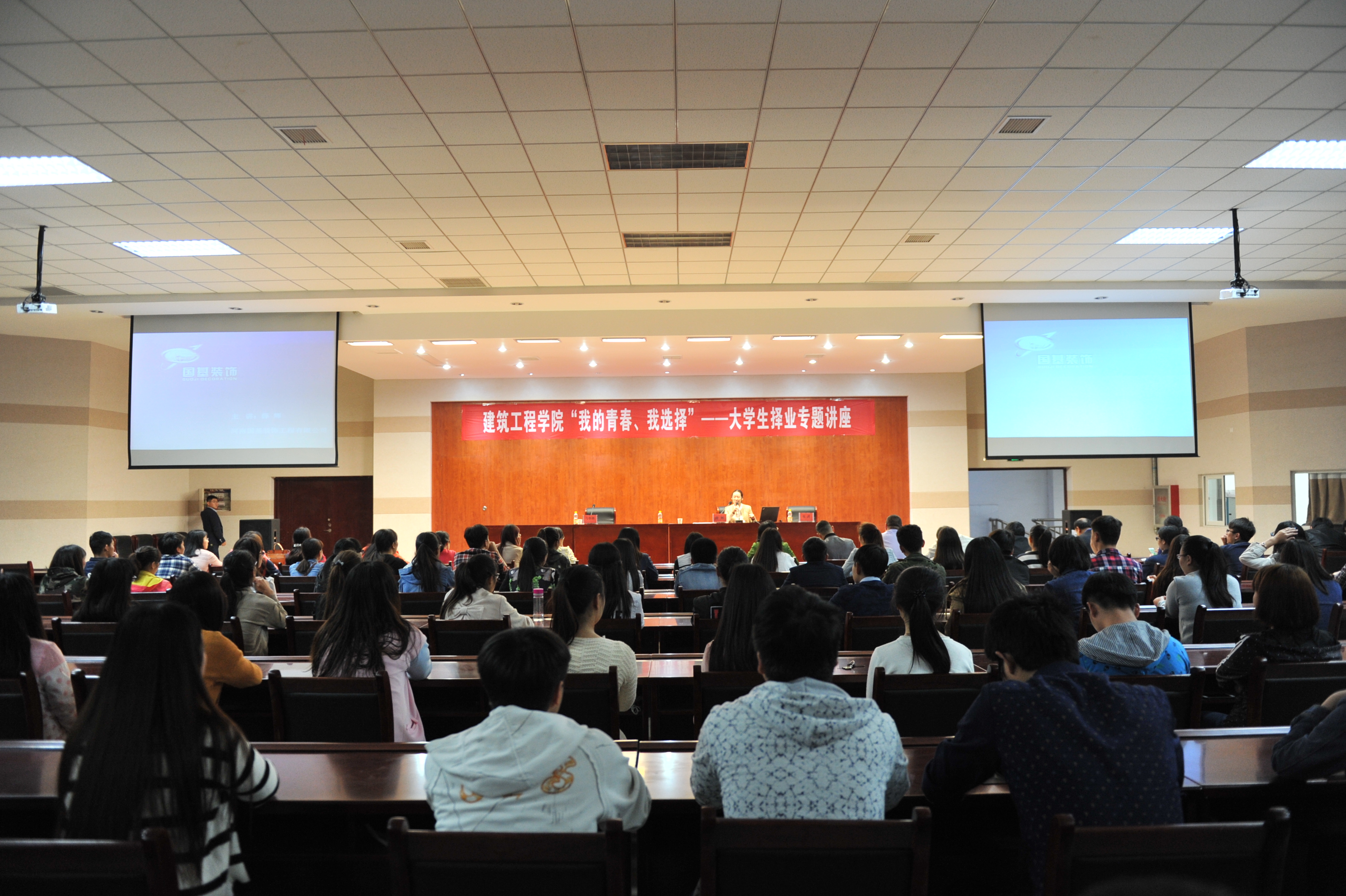 2014级工程造价专业顶岗实习的脚步即将迈出,为进一步完善milan米兰官网大学生就业指导服务体系,我院特邀河南国基装饰工程有限公司总经理薛辉老师14级大学生备战就业进行专题请坐,帮助我院大学生提供更好的就业思路。为更好的让当代大学生了解建筑行业的就业前景,2016年4月26日在实训楼二楼会议厅举办了以“我的青春,我选择”为主题的大学生择业专题讲座。