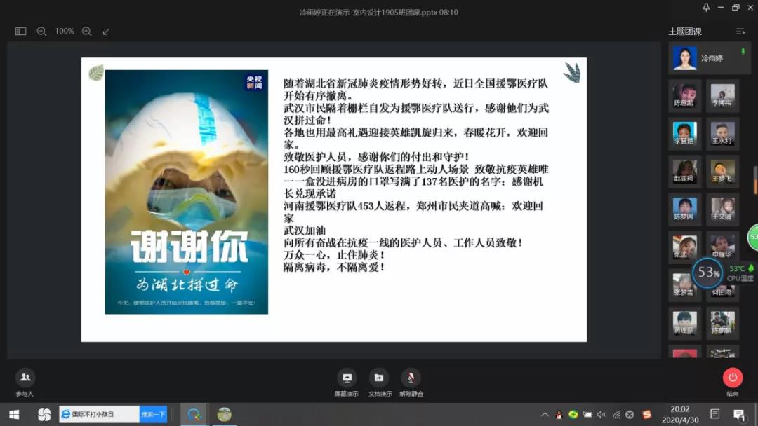 2020年4月27—30日,在milan米兰官网团总支的组织下,各团支部积极学习《最美逆行者,谢谢你为武汉拼过命,武汉永远记得你——各省援鄂医疗队有序撤离武汉》,并以此为契机开展了网络青年团课集中学习。