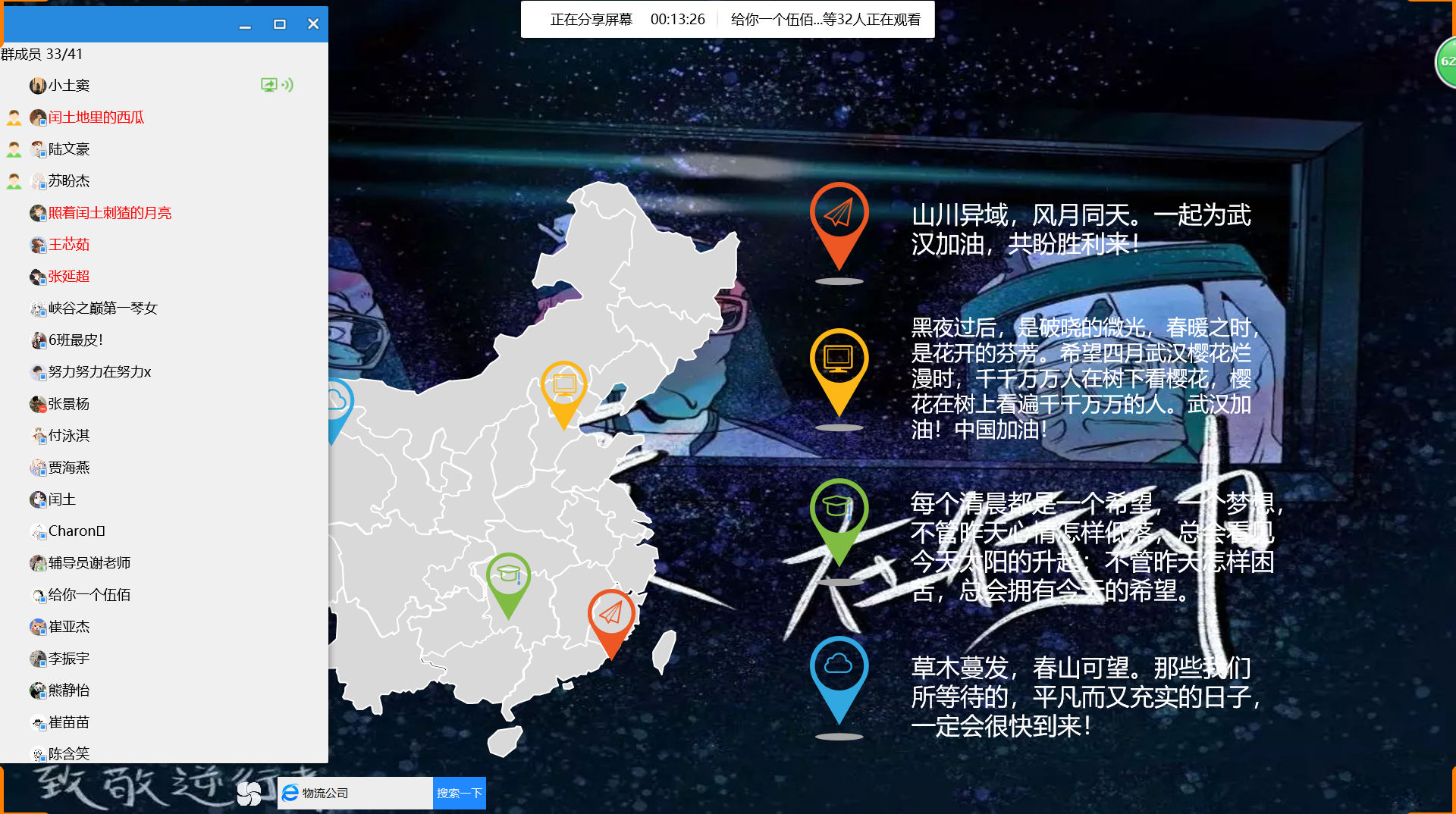 milan米兰官网20位辅导员通过网络方式每周带领学生开展《青春战“疫”,我们云在线》主题团课,团总支共有42个团支部1480名学生参加团课学习和讨论,同学们在主题团课中有所学、有所悟、有担当、有作为,学习、体会、感悟青年担当与青春力量。