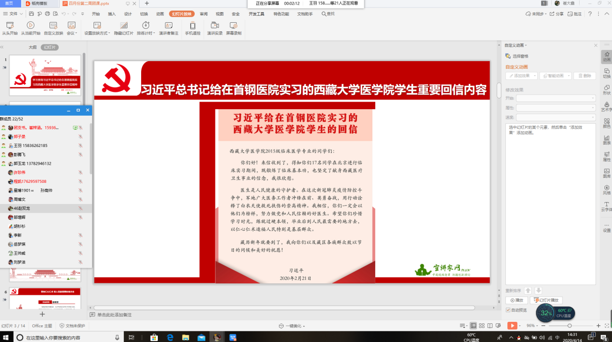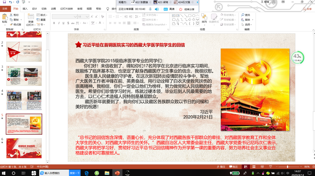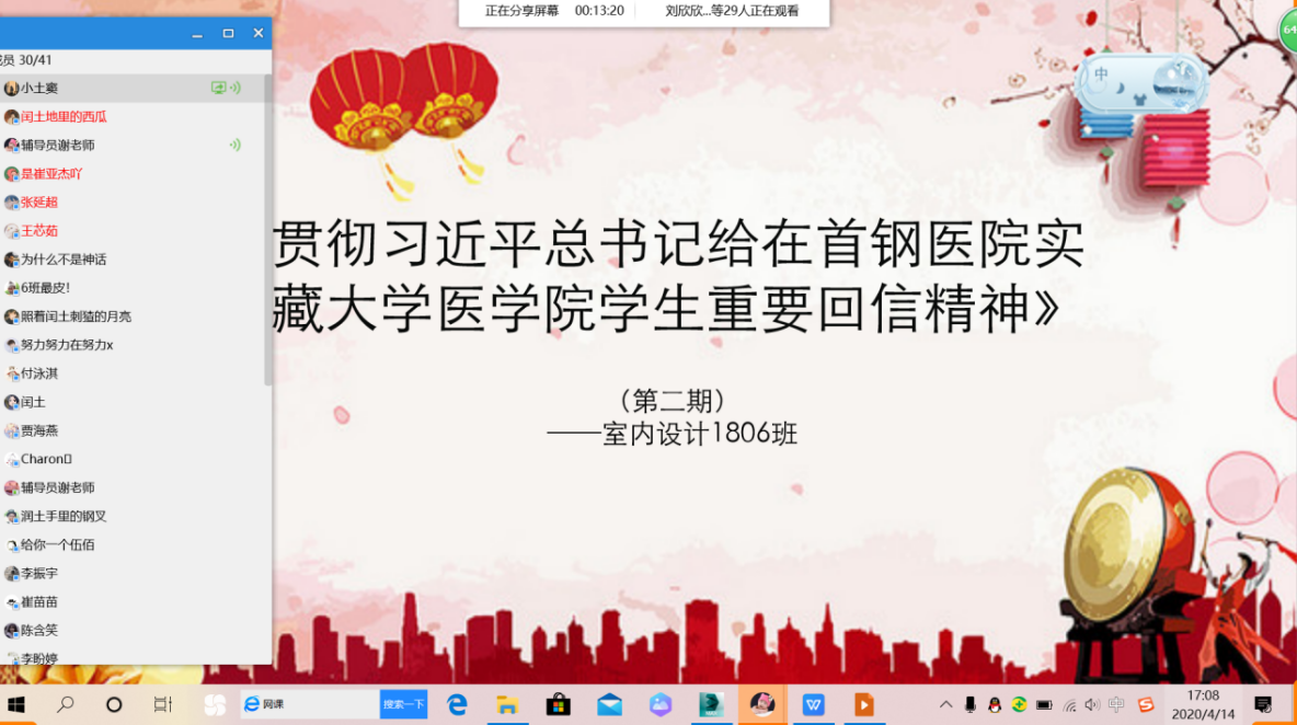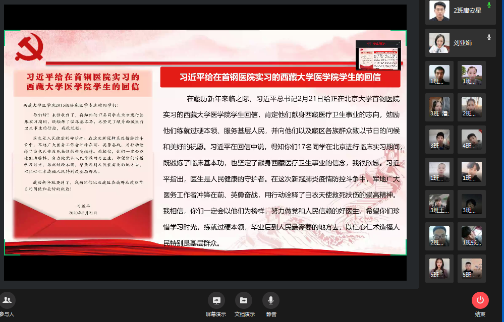 2020年4月13—16日,在milan米兰官网团总支的组织下,各团支部积极学习《习近平总书记给在北京大学首钢医院实习的西藏大学医学院学生的回信》,并以此为契机开展了网络青年团课集中学习。