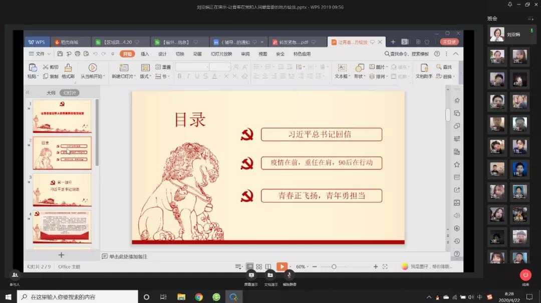 2020年4月20—24日,在milan米兰官网团总支的组织下,各团支部积极学习“习近平回信勉励北京大学援鄂医疗队全体‘90后’党员——让青春在党和人民最需要的地方绽放”并以此为契机开展了网络青年团课集中学习。