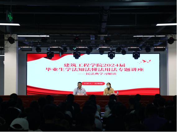 马春燕结合身边案例,用通俗易懂的话语和生动的讲解要求同学们严守法律底线,懂法、守法,并引导同学们在受到侵害的时候,学会运用法律手段维护自己的权益。最后,马春燕希望大家能够发扬建工吃苦耐劳的精神,克服在实习过程中遇到的各种困难,以积极主动的态度,投入到实习中去。