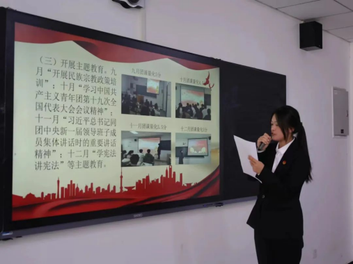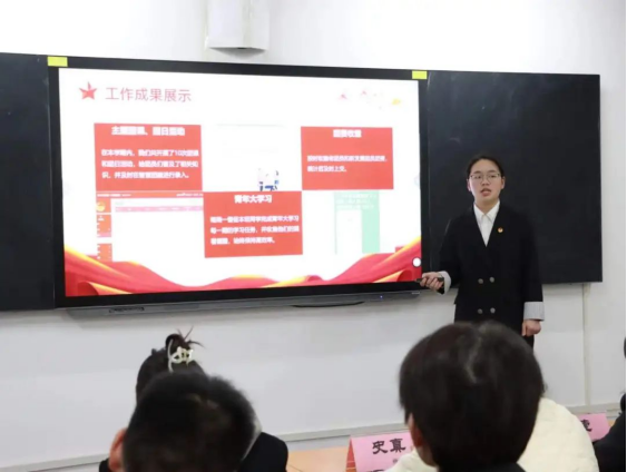 会上,各班团支书上台对团支部工作做以总结汇报,主要围绕基层团组织建设、班级建设、职能工作、智慧团建、团费缴纳、团日活动等方面,详细汇报了本学期的工作职责落实情况和成效成果,充分展现各支部团员青年积极向上、团结和谐的精神面貌。同时,团支书们也勇于发现自己工作中的不足之处,并提出具体可行的改进方案,进一步对未来的工作做出规划和展望。