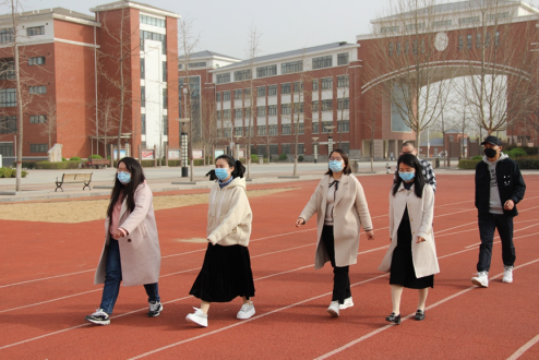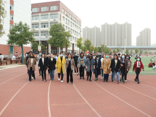 春寒料峭,老师们精神抖擞,按照防疫要求,大家戴好口罩准时在操场中间集合。随着开始的哨声响起,老师们三五成群,欢声笑语,在愉快而又轻松的氛围中沿着操场阔步向前,大家你追我赶忘却了工作的压力。操场边,学生们为老师加油呐喊,仿佛让今天这个雾蒙蒙的天空也变得阳光灿烂。