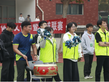 场外的温暖瞬间,同时学院的各个志愿者,以饱满的热情,带动了比赛的氛围。