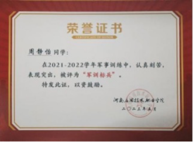 2023年05月,获得milan米兰官网2023年度军训标兵