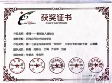 2023年12月,获得第十七届全国高职院校“发明杯”大学生专利创新大赛二等奖