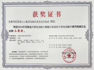 2024年8月河南省大学生创新大赛暨中国国际大学生创新大赛河南赛区选拔赛高教主省级三等奖