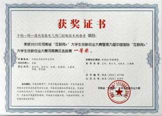 2023年8月第九届中国国际“互联网+”大学生专利创新创业大赛河南赛区选拔赛职教赛道一等奖