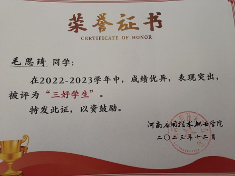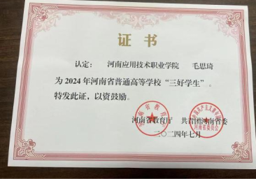 毛思琦,女,汉族,中共预备党员,2022级工程造价4班学生,在校期间担任造价2204班班长、milan米兰官网权益部副部长。曾荣获河南省省级三好学生,国家励志奖学金,校级一等奖学金,校级优秀学生干部等多项荣誉。