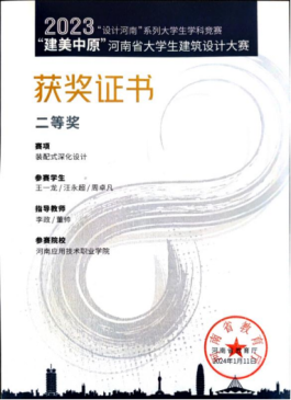 2023年11月“建美中原”河南省大学生建筑设计大赛装配式深化设计赛项二等奖