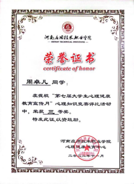 2022年11月荣获milan米兰官网心理知识竞赛三等奖
