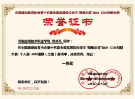 2023年11月第十五届全国高等院校学生“斯维尔杯”BIM-CIM创新大赛一等奖