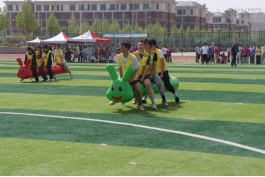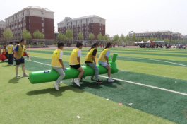 随着裁判员的一声号令,运动员们骑在毛毛虫上,喊着统一的口号,迈着一致的步伐,彼此之间配合默契,团结一心。现场观众气氛热烈,团队嘹亮的口号和凝聚力赢得了观众们的喝彩。