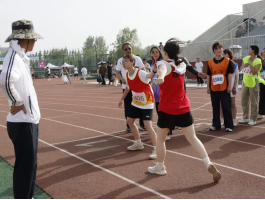 口哨声一响,运动员们如同离弦的箭一样,队友之间配合默契,他们抱着球迈着矫健的步伐奋力奔向终点。用速度点燃希望,用默契铸就辉煌。