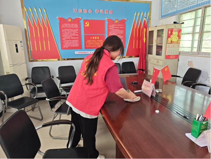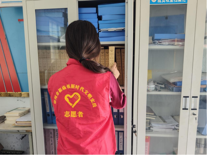 实践内容:2025年7月,在河南省林州市龙山区深沟村村委会打扫卫生,整理档案,书写宣传稿。