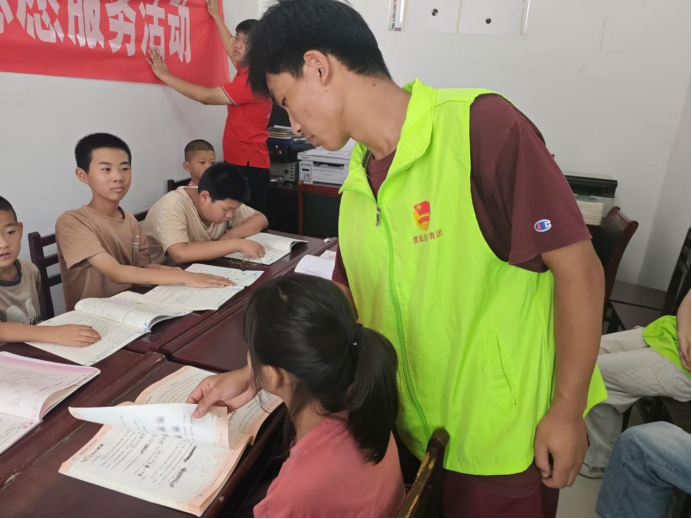 实践内容:2025年7月10日上午,在河南省濮阳市濮阳县梁庄镇乡政府,我辅导小朋友的暑假作业,巡河护河时,